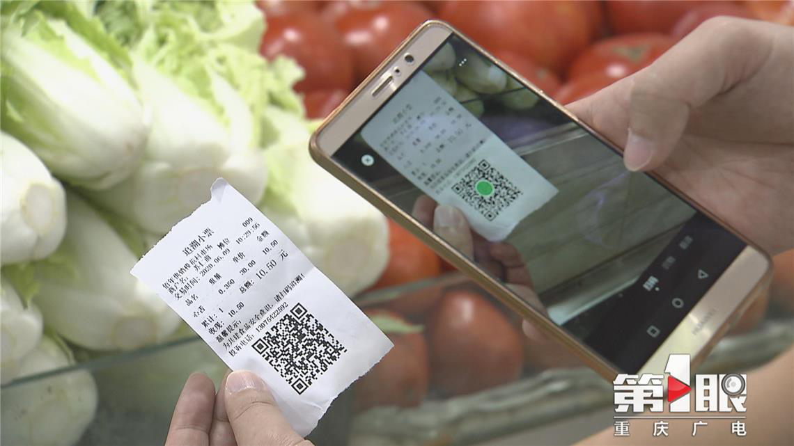 第1眼記者注意到,在農貿市場的每一筆交易,消費者都可獲得具有追溯代碼的小票,掃描二維碼,就能獲取所購農產品的供應商及其資質證明等信息。