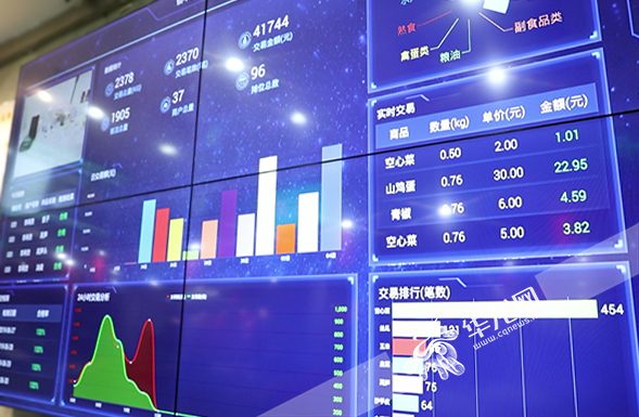 ??數據大屏顯示當天產品交易量、種類、價格等信息。華龍網-新重慶客戶端記者 謝鵬 攝