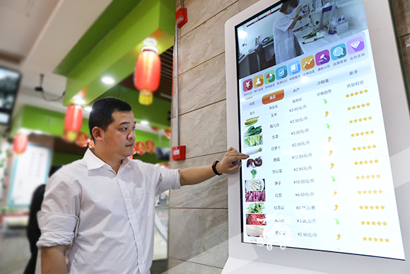 ???公共查詢觸摸電子屏,可以查詢自己購買的蔬菜的產地、價格等信息。華龍網-新重慶客戶端記者 謝鵬 攝